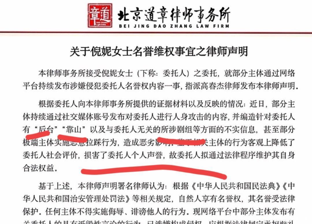 倪妮通过律师发声明维权了